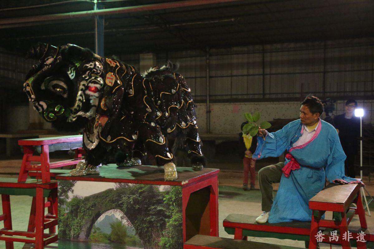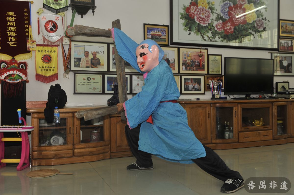 新桥大头佛表演,区级名录。源于《西游记》中唐僧在观音帮助下,利用长命草和蒲扇两大法器降服雄狮和南北朝交洲刺史檀和之奉命伐林邑两个传说。主要在番禺、顺德等珠三角的重要节庆和迎神赛会中表演。新桥大头佛表演从佛山鸿胜馆传入,原有“睡佛采灵芝”四个套路,后改编成两个版本,既可单独表演,又可由醒狮配合表演,而且加入“狮子上楼台”独具地方特色的表演节目,演绎少林寺武僧日常起居,暗藏蔡李佛拳的武术功架。表演者根据自身武术基础,配合不同佛鼓鼓点,灵活设计表演动作,动作夸张,变化多端。主要传承人有周珠仔、张崇格和汤金华等。